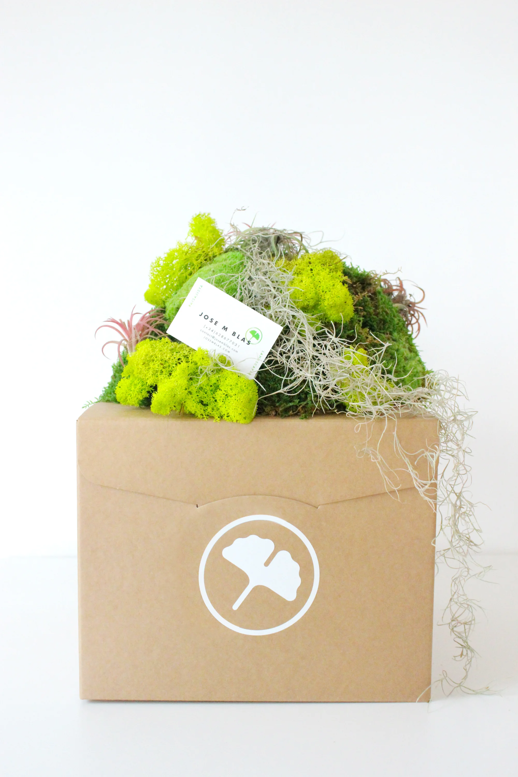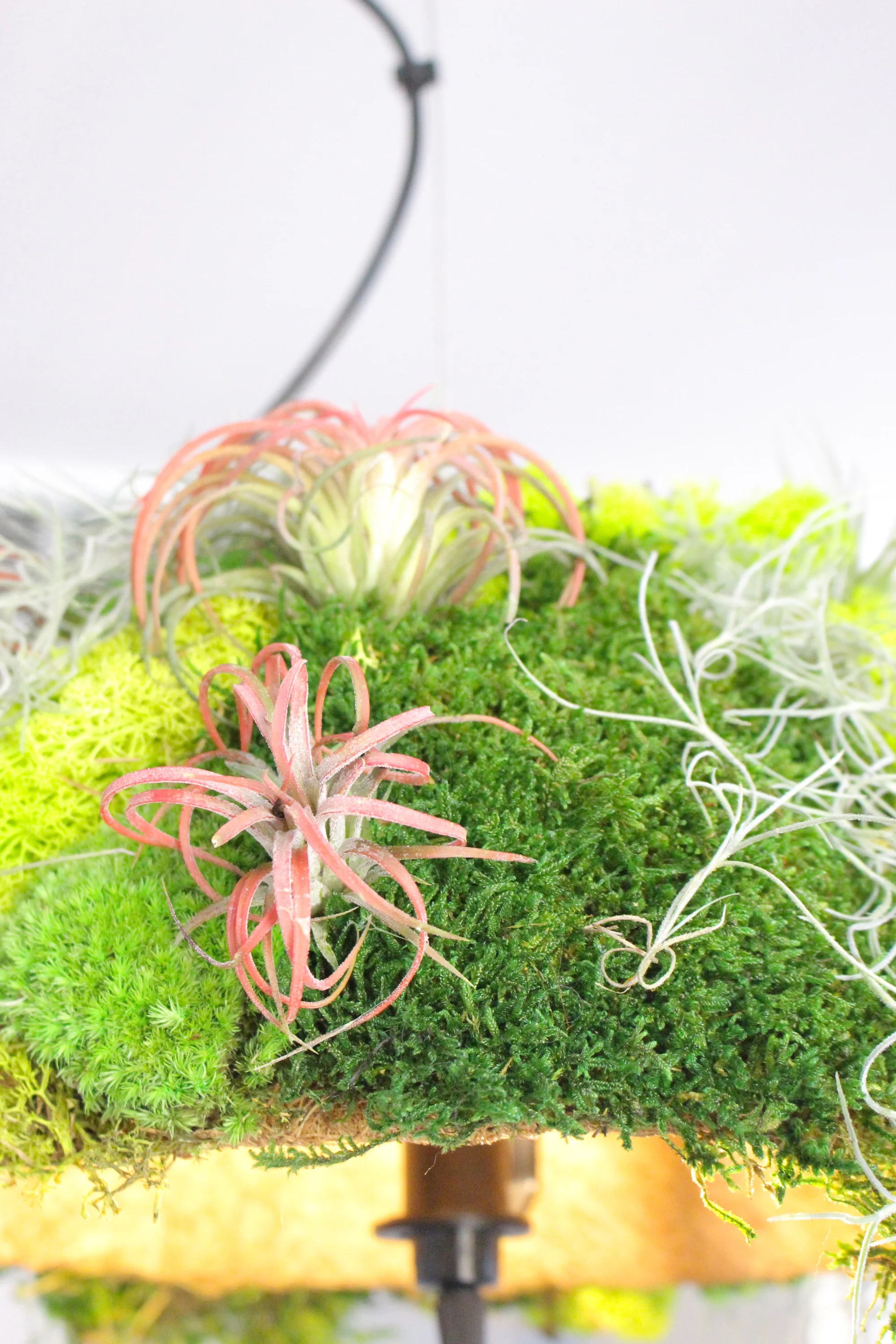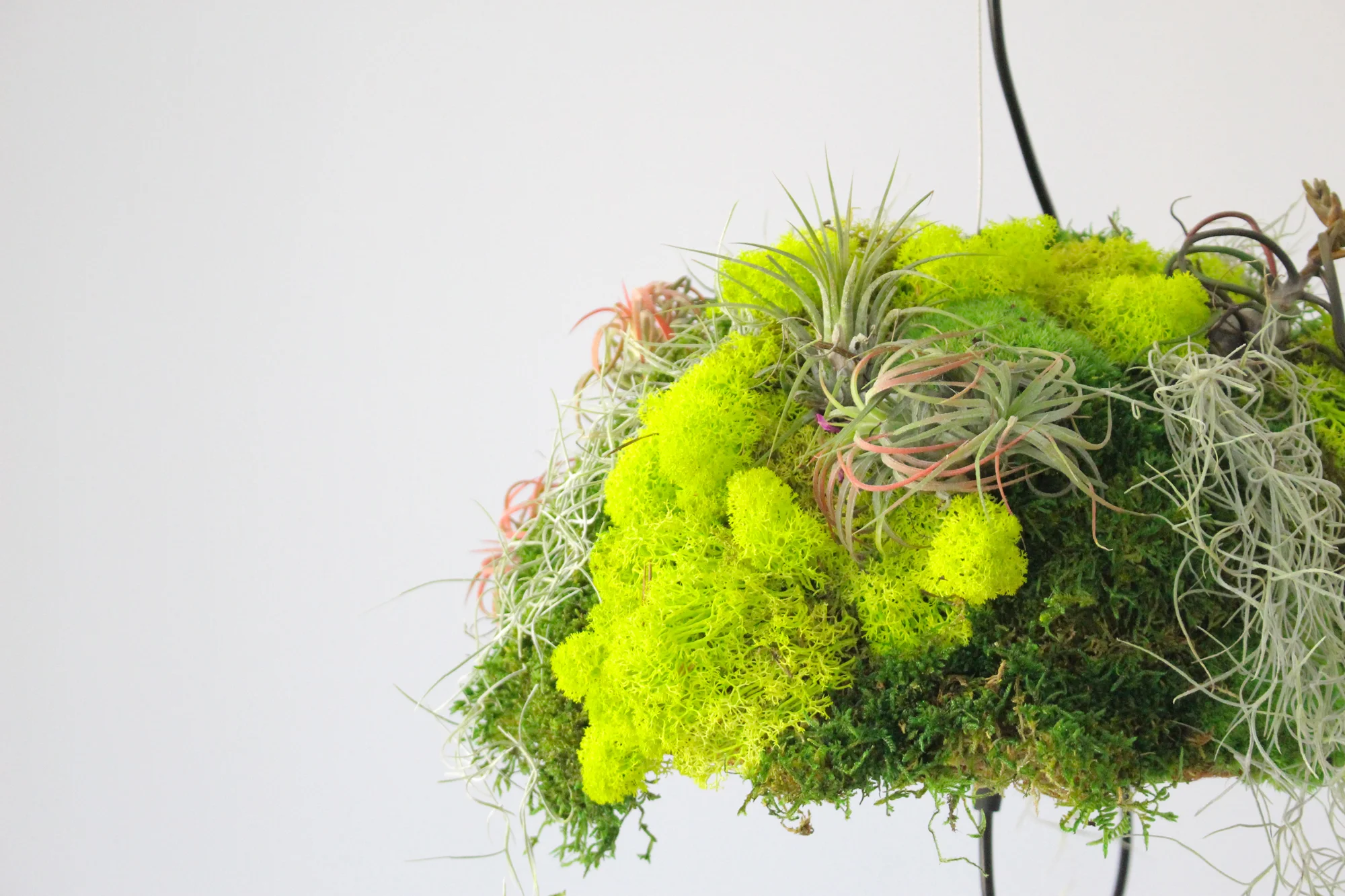 Para este proyecto he utilizado una combinación de musgos y líquenes preservados junto con especies epífitas (capaces de crecer sin necesidad de sustrato) del género Tillandsia como las variedades usneioides, aeranthos o argentea.