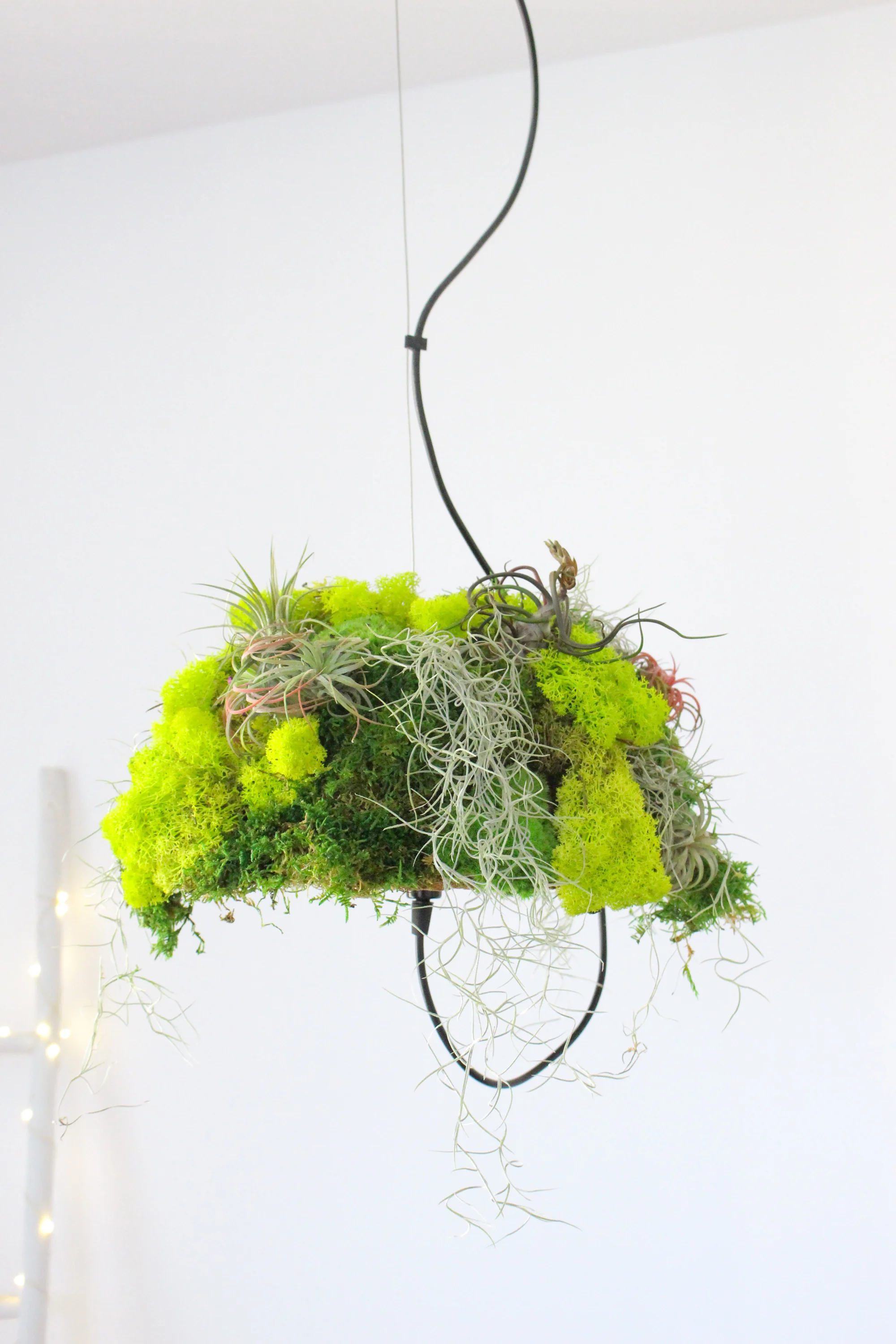Aprovechando la estructura podemos crear un ecosistema colgante que hará las veces de lámpara.