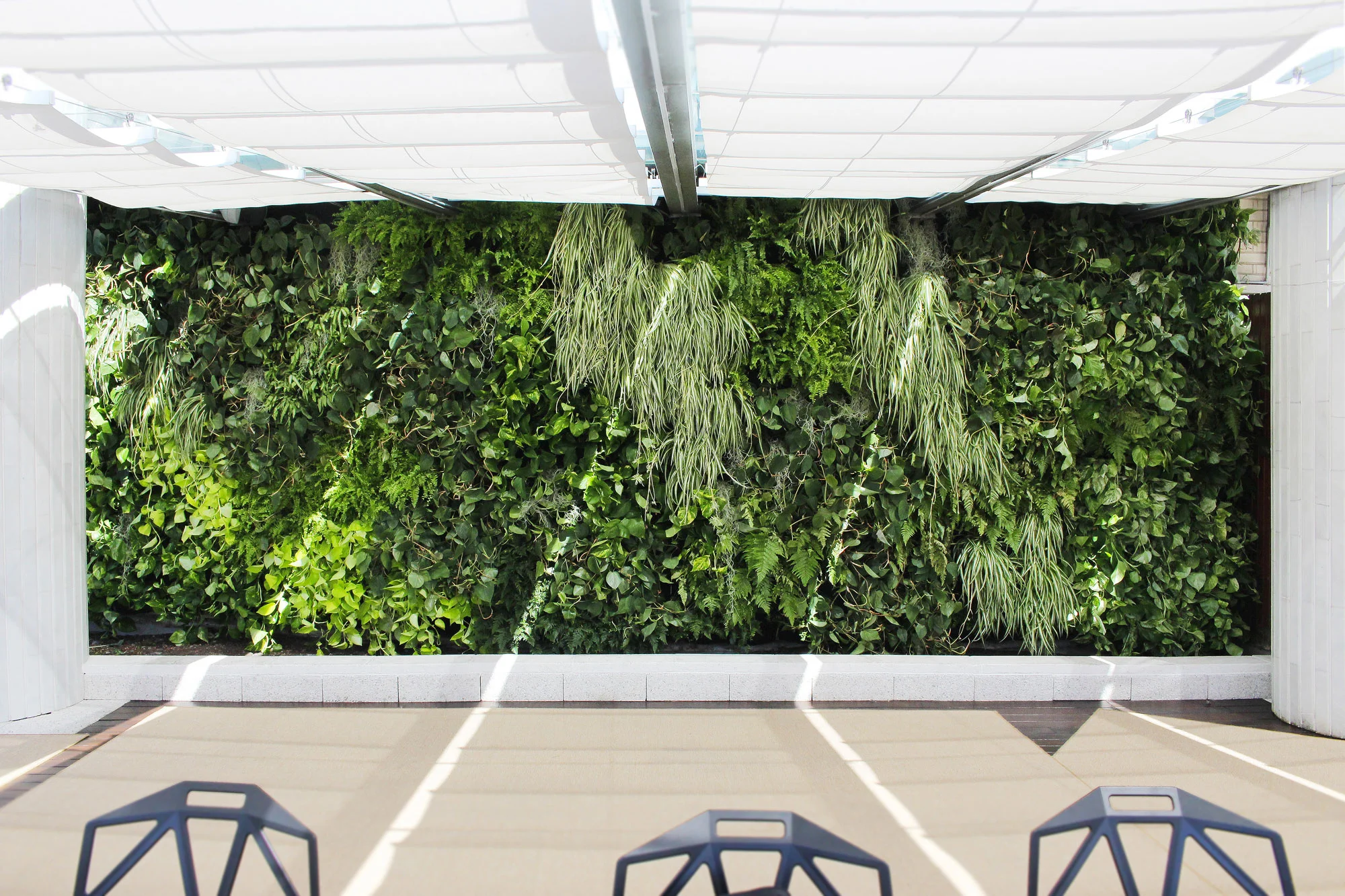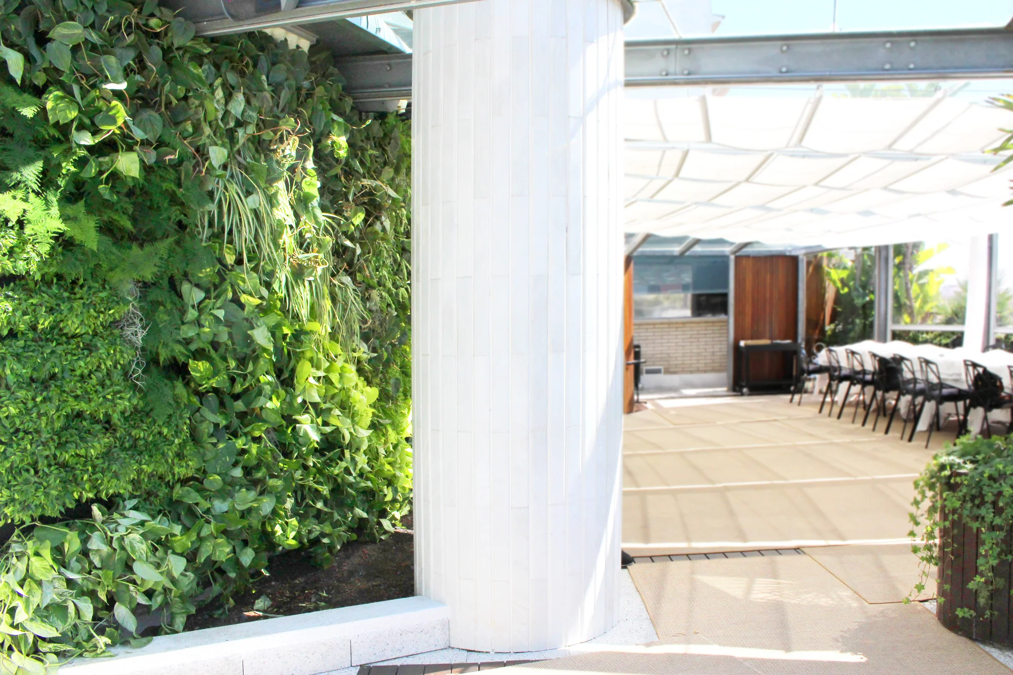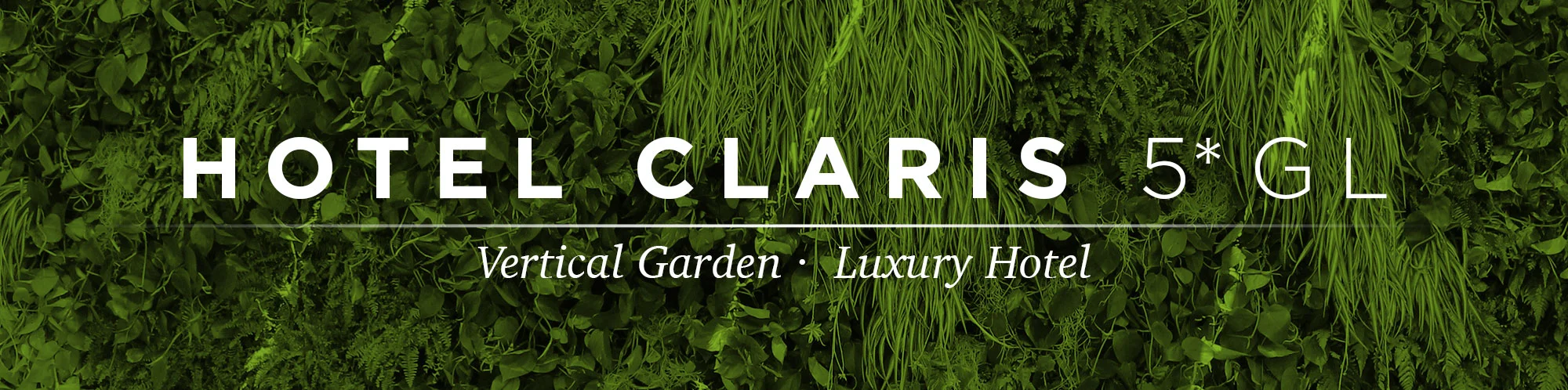 Jardín Vertical diseñado en el Hotel Claris 5*GL en el centro de Barcelona, siendo en origen un antiguo palacio del siglo XIX, el Palacio Vedruna. Hotel que se caracteriza por sus numerosas obras de arte; destacando su atmósfera egipcia y la pieza del gran artista catalán Subirach, que nos recibe al entrar.