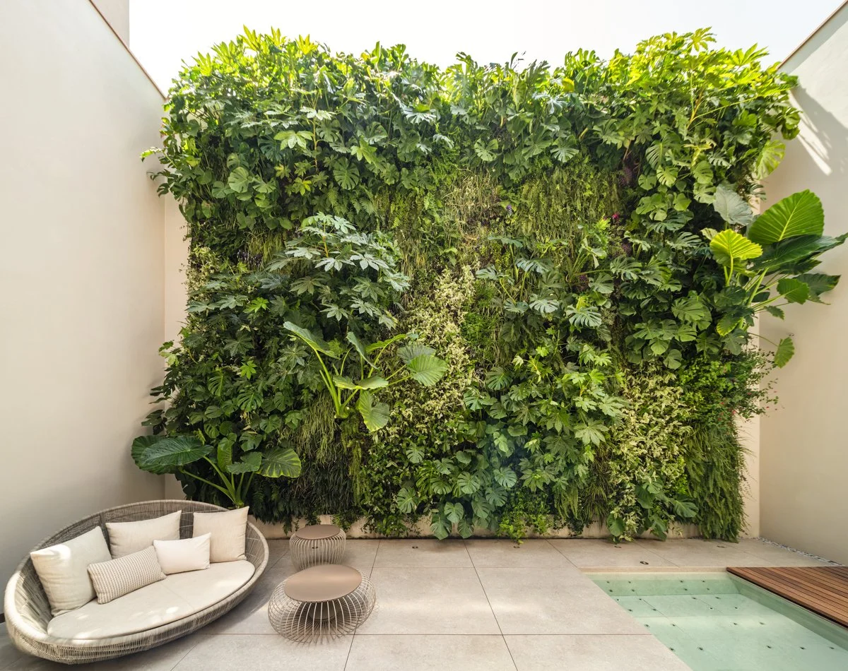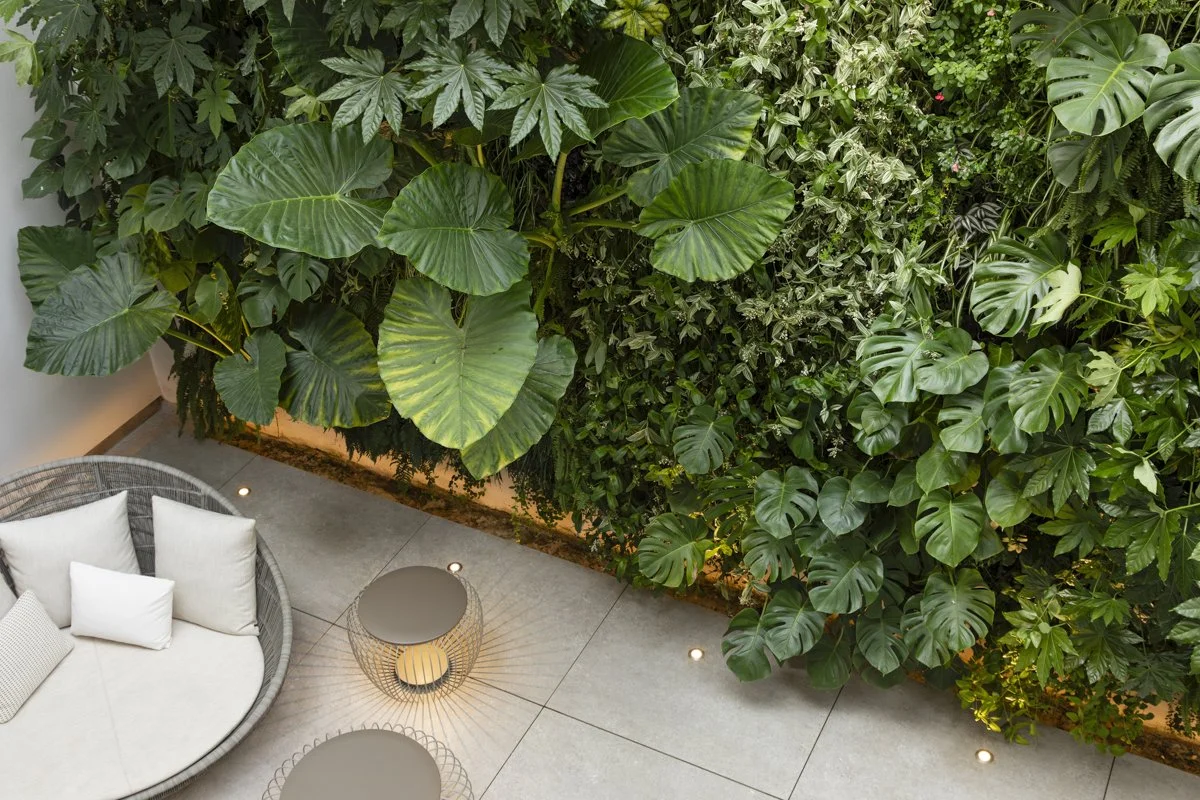 El resultado es un jardín vertical pensado para disfrutarse desde múltiples perspectivas, donde el verde y la naturaleza se convierten en protagonistas, generando un espacio vivo, fresco y envolvente.